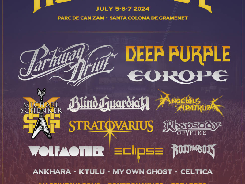 Allí, en el Parc de Can Zam, podremos disfrutar de las actuaciones de las leyendas del rock duro Deep Purple; el único show en España en 2024 de los titanes australianos del metalcore Parkway Drive; sin duda una de las bandas más representativas del metal actual; la célebre banda hardrockera escandinava Europe y un nuevo ataque del mítico “bombardero rubio” Michael Schenker, quienes encabezan el primer avance de bandas de la que será una edición para el recuerdo. Además, contaremos con unos auténticos referentes del power metal como son Blind Guardian o los finlandeses Stratovarius.